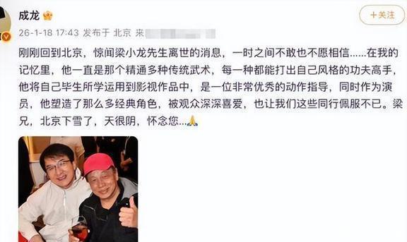 还有成龙,特地发了篇文章怀念他,“对多种传统武术都很在行,每一招都能展现出自己的特色。”