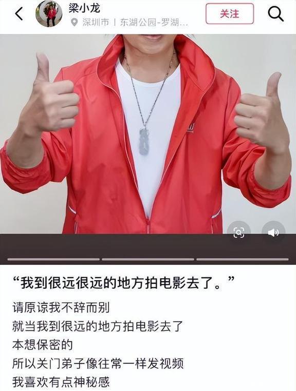听到这个坏消息后,网友们都感觉难以置信,纷纷在他的社交账号下面留言问情况,希望他能给个回复。到那天晚上七点多,梁小龙的关门弟子终于开口了,晒出了师傅的三张帅照,还在师傅的账号上发了告别信,说“我去远远的地方拍电影啦”。