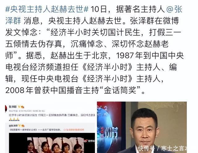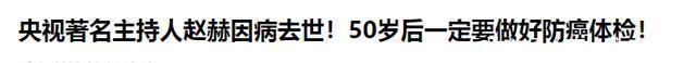 光明网:央视著名主持人赵赫因病去世!50岁后一定要做好防癌体检!