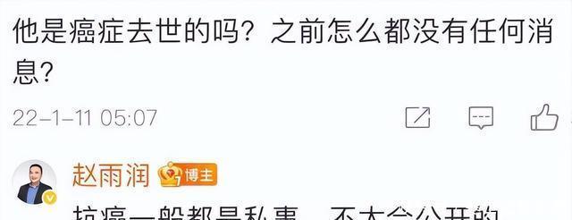 他离世之后妻子也一直生活在原来的房子里。 赵赫离世之后,有不少人悼念他,其中赵雨润的悼念让大众知道了他离世的消息。 是在赵雨润的讲述中,才知道,原来他已经和病魔抗争好几年了。